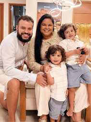 Em 2011 conheci o amor da minha vida, o Filiphe, com quem me casei em 2015. Já estamos juntos há 14 anos e, desses, quase 10 anos de casados (celebraremos essa data em Outubro/2025).Após 3 anos de casados decidimos que era a hora de "abrir a fábrica" e aumentar a família, daí troquei de médico porque queria mudar de fase, sabe? E aí veio a surpresa: o novo médico me passou uma bateria de exames que eu não fazia há anos e, eu não sabia, mas acabei descobrindo que tinha um quadro severo de SOP (Síndrome do Ovário Policístico). O sonho de gerar filhos foi adiado e iniciei um tratamento pesado contra esse mal. Foram ciclos de seis meses, repetíamos os exames e nada mudava. Até que, 2 anos e meio depois, o Senhor limpou meus ovários e o médico nos autorizou a tentar engravidar. Um mês depois eu estava gerando o Nicolas. Deus foi bom demais conosco! E, logo após Nick completar 1 ano, engravidei do Vicente. Nossa família é o meu maior e melhor presente nessa vida.